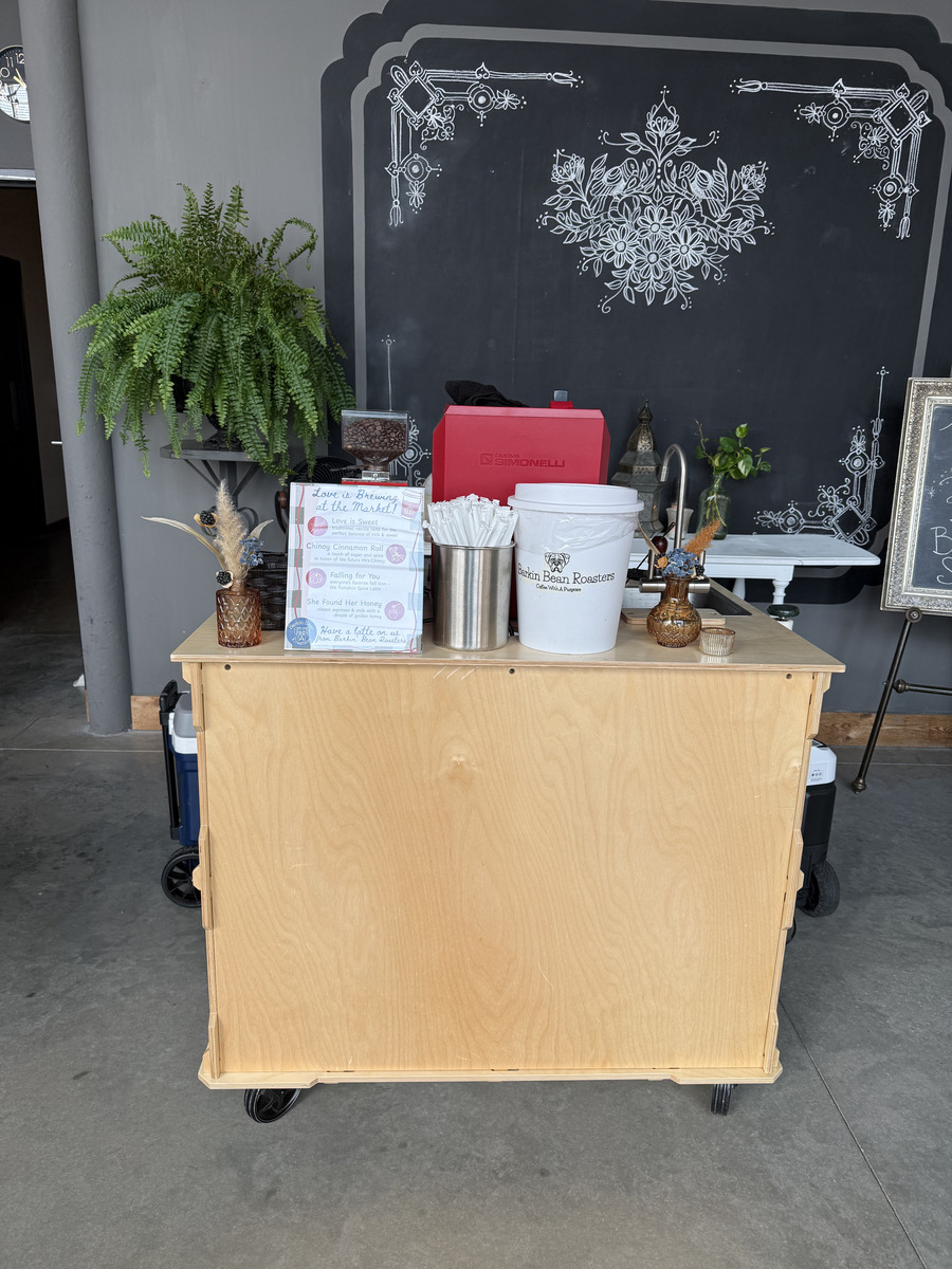 We also have a coffee cart. This is perfect for Weddings, Open Houses, and smaller events.